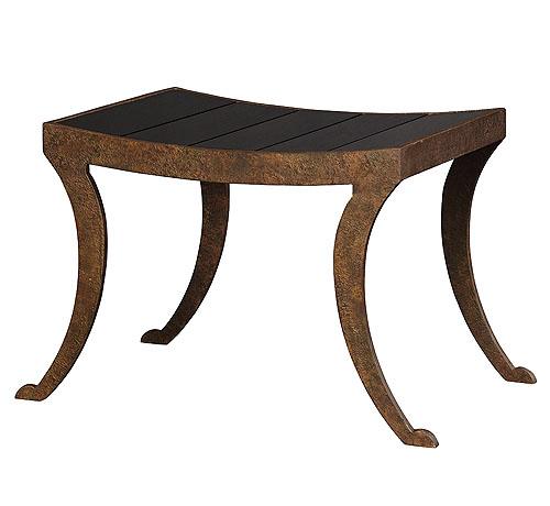 Etruscan Bench made of bronze with mahogany slat-seat. A stunning sculptural seating option for entertaining.